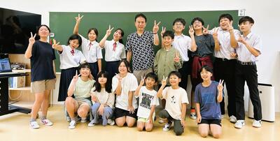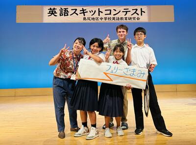 令和7年6月19日(木)、南風原町中央公民館黄金ホールにて「島尻地区英語スキットコンテスト」が開催され、阿嘉中学校からは3年生の松茂良和さん、1年生の金城克樹さん、大柳琴葉さんの3名が参加しました。このコンテストには、島尻地区の中学校21校が参加し、各校がオリジナルのスキット(寸劇)の台本を作成し、工夫を凝らした表現で演技を披露しました。今回で5回目となる本大会ですが、本校からの出場は今回が初めてとなります。