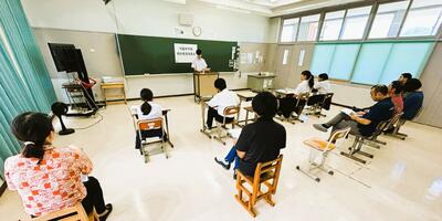 令和7年6月16日(月)、離島校訪問として島尻教育事務所の石嶺真哉所長、宮平圭一郎指導主事、仲宗根義恭主幹が来校しました。代表授業として小学校3・4年の市耒隼人先生が国語の複式授業を行いました。校内研修の一環として全職員が授業を参観し、授業研究会では宮平指導主事の指導助言を通して、授業改善に向けて研修を深めることができました。